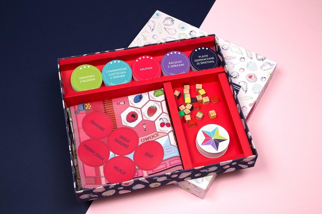 Gra planszowa ma charakter edukacyjny i jest przeznaczona dla dzieci w wieku wczesnoszkolnym do rozgrywek indywidualnych lub grupowych w trakcie lekcji szkolnych. Fabuła gry dotyczy codziennego odżywiania: komponowania posiłków, odgadywania składników potraw. Jej celem jest wzrost świadomości odżywiania wśród dzieci. Gracze mają do dyspozycji dwustronną płócienną planszę, okrągłe karty do gry, gwiazdki kulinarne oraz drewniane pionki. Dodatkowo został opracowany szablon, według którego dzieci mogą wykonać własną czapkę kucharską oraz przygotowany cykl czterech zajęć edukacyjnych wpisujących się w Podstawę Programową edukacji wczesnoszkolnej jako pomoc dla nauczyciela.
