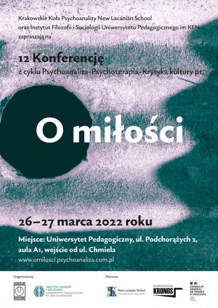 W imieniu organizatorów, Instytutu Filozofii i Socjologii Uniwersytetu Pedagogicznego w Krakowie oraz Krakowskiego Koła Psychoanalizy NLS zapraszamy na XII Konferencję z cyklu Psychoanaliza, Psychoterapia, Krytyka Kultury „O miłości”.